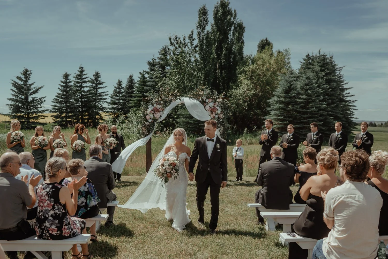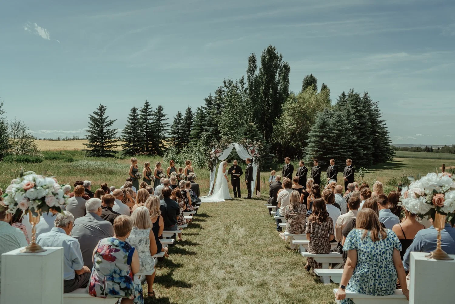 The day was a perfect reflection of Chelsey and Landon: relaxed, intentional, and filled with genuine joy. The wide-open Alberta skies provided a stunning backdrop for their outdoor ceremony, while the bright and clean interior of the Tin Roof offered a cool, stylish escape for the evening reception.