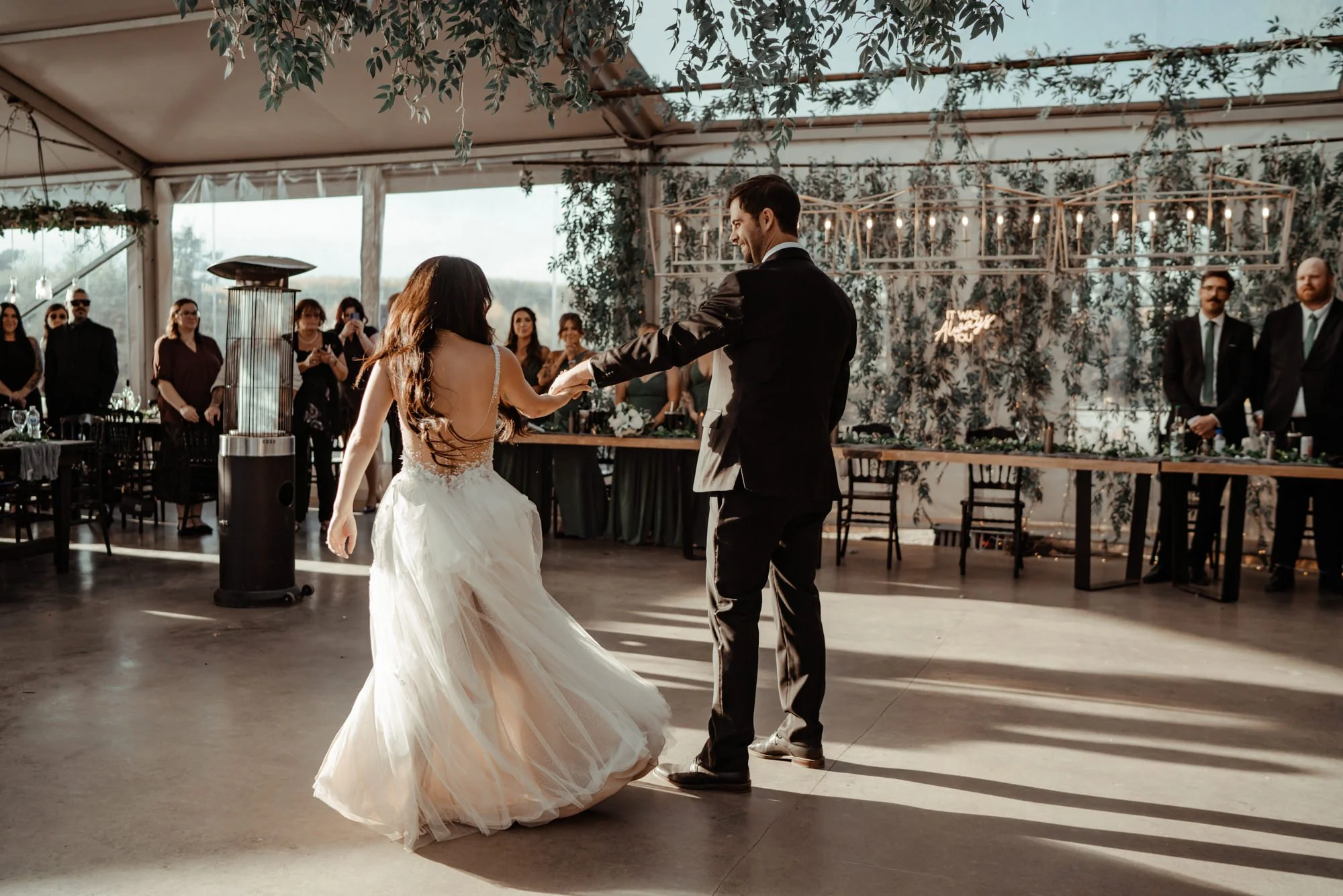 As the evening began, the celebration moved to the clear reception tent. This is a massive win for couples who want that outdoor feeling while staying protected from the elements. The transparency of the canopy allowed the autumn light to pour in, making for some great natural shots during the dinner and toasts.